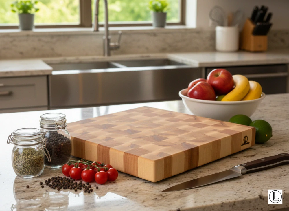 Precizní řemeslná práce z jasanového dřeva Toto robustní krájecí a servírovací prkénko z příčně řezaného jasanu (EndGrain) představuje vrchol řemeslného zpracování. Díky vertikální orientaci dřevěných vláken je povrch maximálně šetrný k ostří vašich nožů (vlákna se rozestoupí a opět stáhnou) a prkénko disponuje výrazně delší životností než běžné modely ze spárovky.